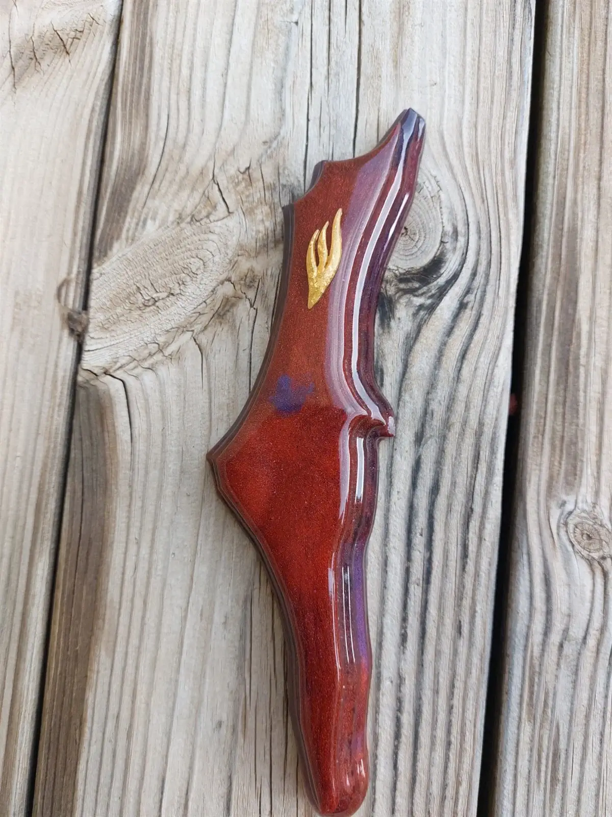 בית מזוזה בצבע אדום חמרה עם “ש” מזהב בצורת ארץ ישראל.